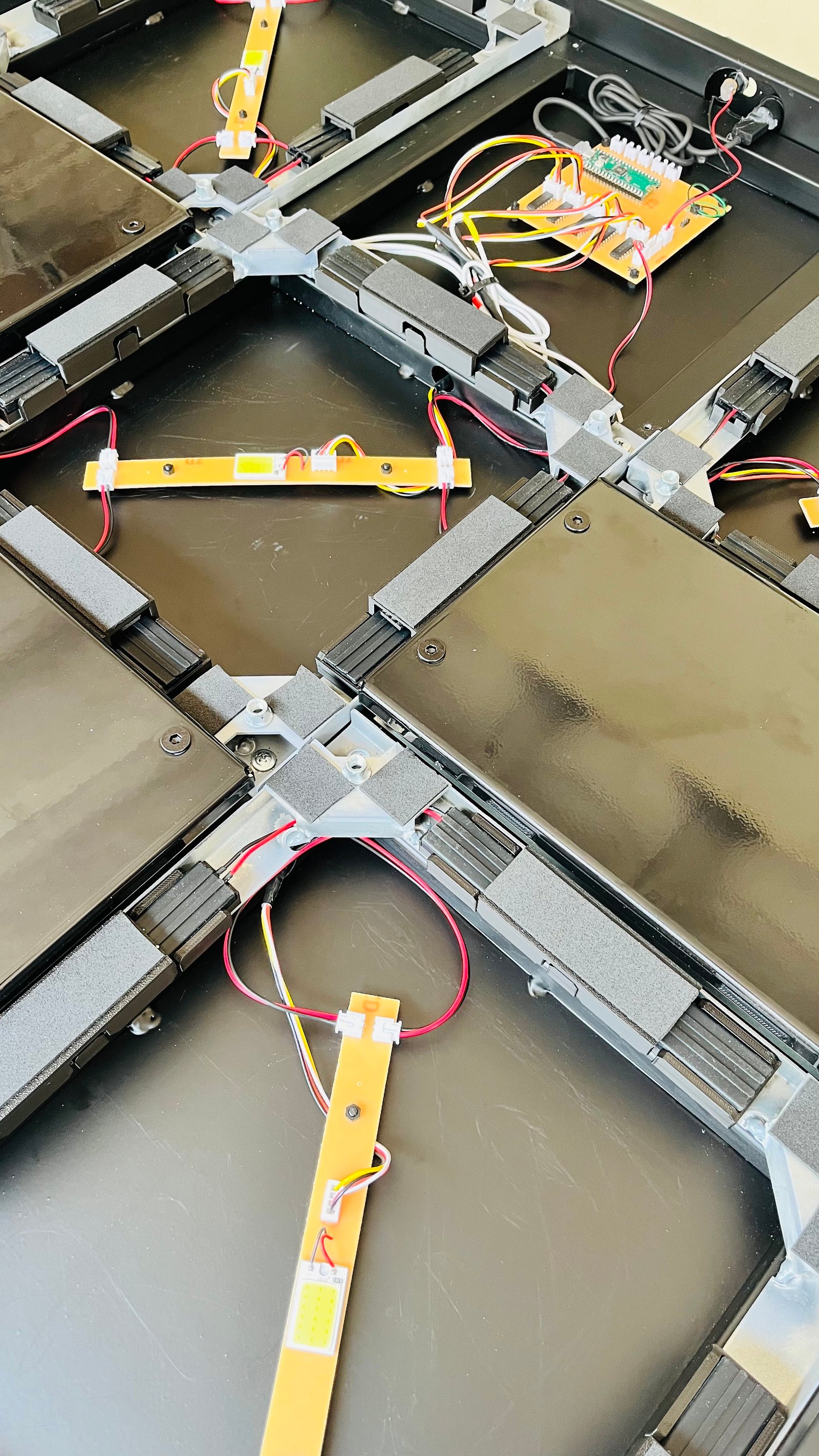 -4 sensores de contato em cada botão, com acionamento de luzes ao pisar;